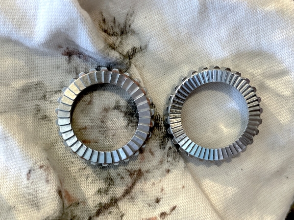 テストするからには限界状態で。 つまり、シビアコンディションでやる。 すでに過走行9400km走行で交換前ので・・・